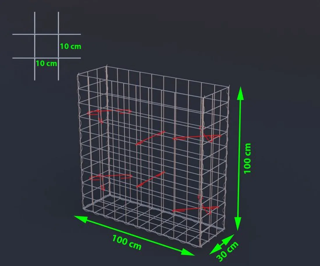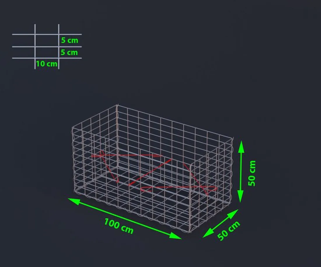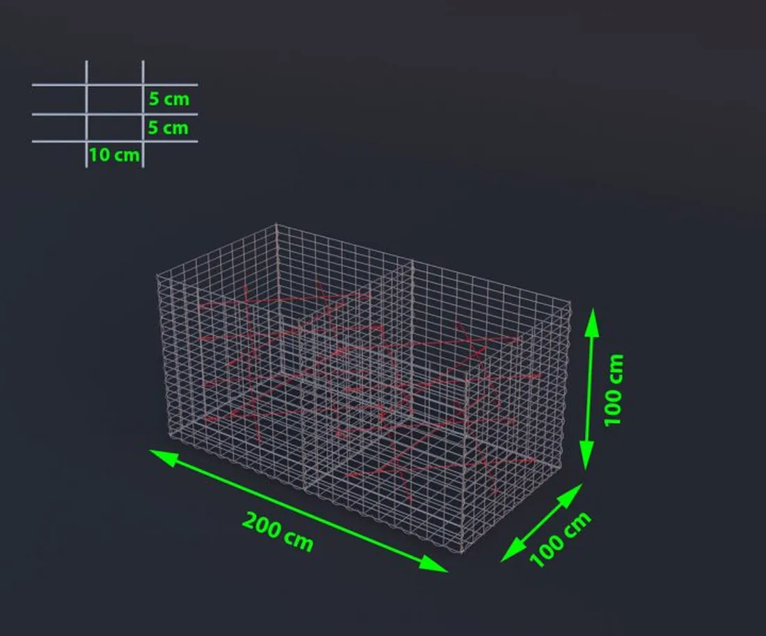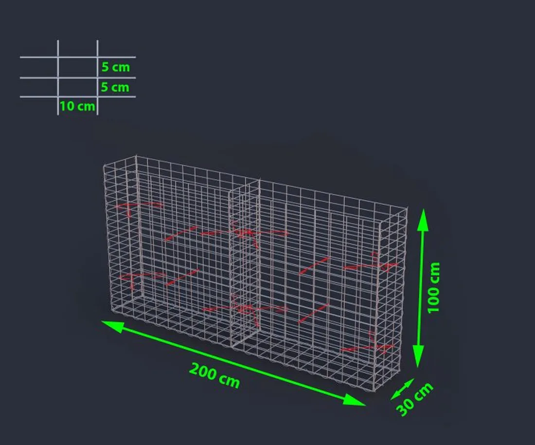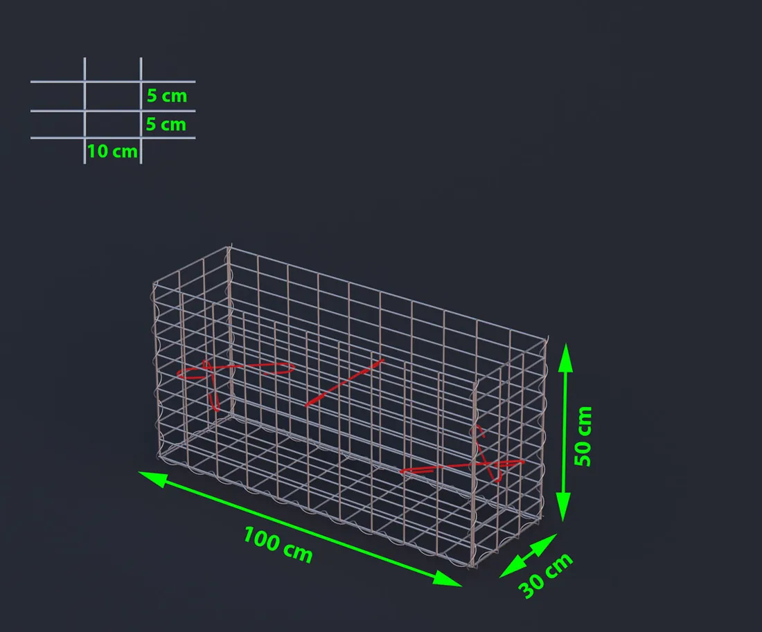 Gabiónová sieť je konštrukcia zložená z drôtu s priemerom 4mm. Drôt je špeciálne povrchovo upravený hrubou vrstvou trvácnej zliatiny zinku a hliníka (95% ZN, 5% Al) 350g /1m2. Gabiónové siete sa môžu použiť samostatne na akúkoľvek dekoračnú prípadne funkčnú úpravu záhrady. Spájaním gabiónových sietí vytvárame gabiónové koše dvomi spôsobmi – sponami alebo spojovacími špirálami.