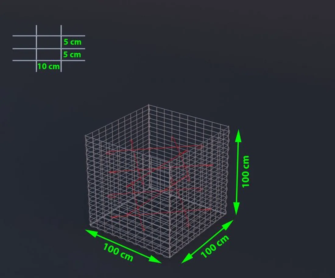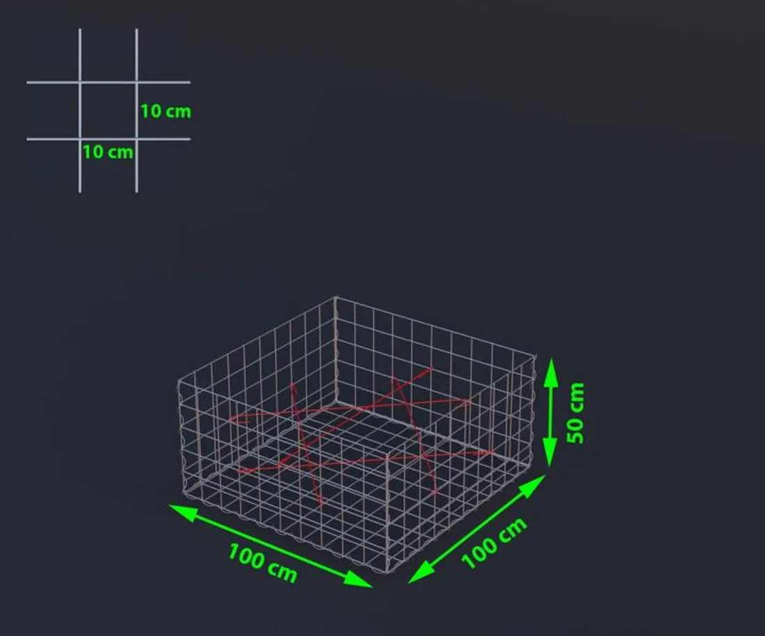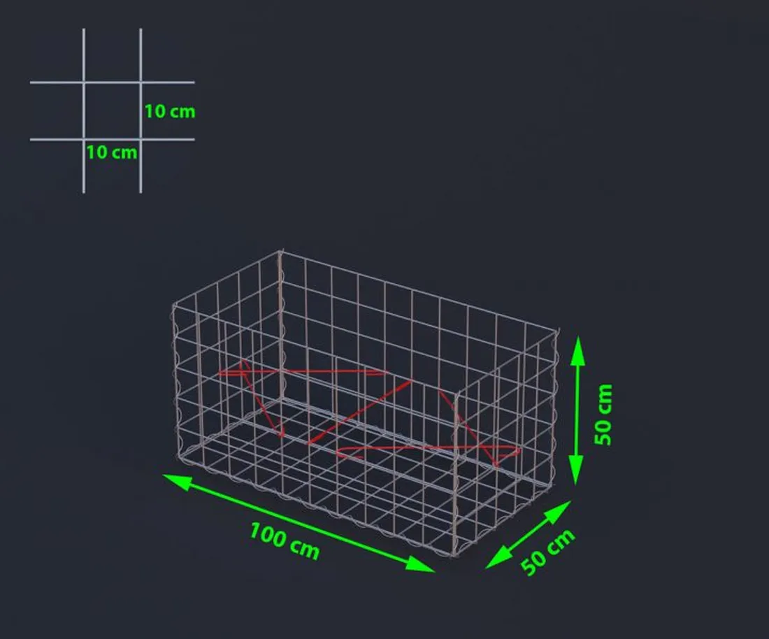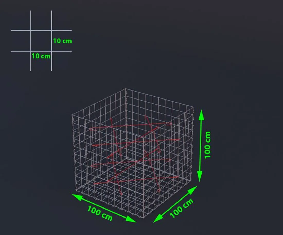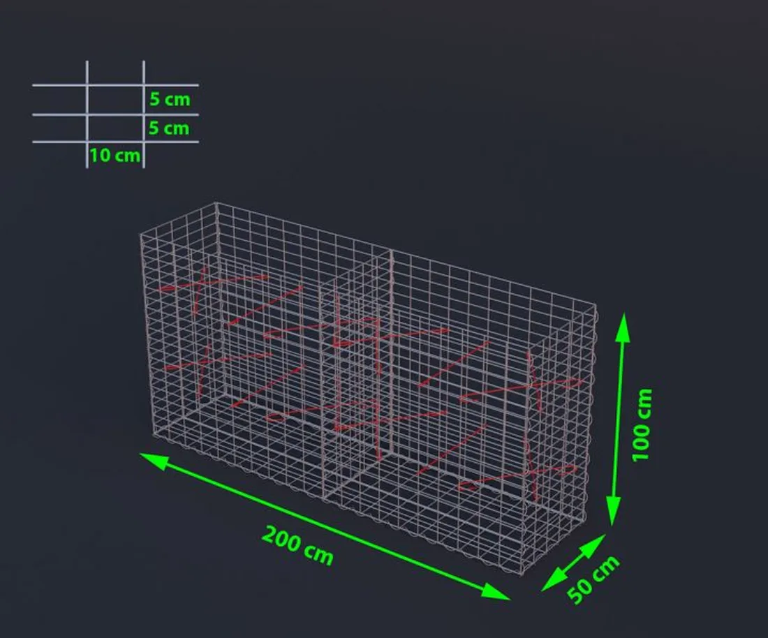 Gabiónová sieť je konštrukcia zložená z drôtu s priemerom 4mm. Drôt je špeciálne povrchovo upravený hrubou vrstvou trvácnej zliatiny zinku a hliníka (95% ZN, 5% Al) 350g /1m2. Gabiónové siete sa môžu použiť samostatne na akúkoľvek dekoračnú prípadne funkčnú úpravu záhrady. Spájaním gabiónových sietí vytvárame gabiónové koše dvomi spôsobmi – sponami alebo spojovacími špirálami.