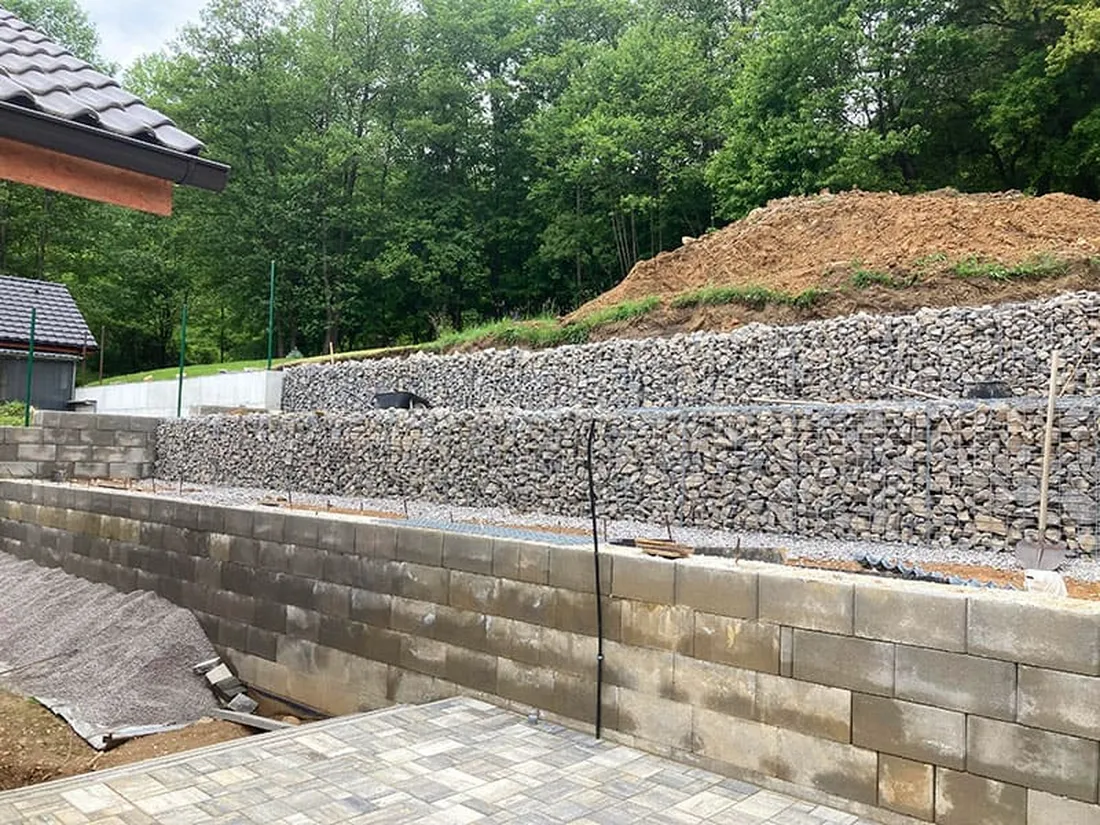 Gabióny predstavujú jednoduchý a efektívny spôsob spevňovania náročných pozemkov pre domy vo svahu, vodných brehov a vytvorenie akýchkoľvek funkčných a dekoračných úprav záhrad. Zabezpečia účinnú protihlukovú a proti veternú zábranu, ktorá vám dopraje ticho a súkromie. Gabiónové steny môžu mať akúkoľvek dĺžku, výšku a hrúbku. Nevyžadujú žiadnu údržbu, sú flexibilné a zároveň oceľovo pevné. Oporné múry z gabiónov sú vhodné aj pri pozemkoch, kde pôda zvykne erodovať, keďže disponujú prirodzeným drenážnym systémom a nezadržiavajú vodu v kopci.