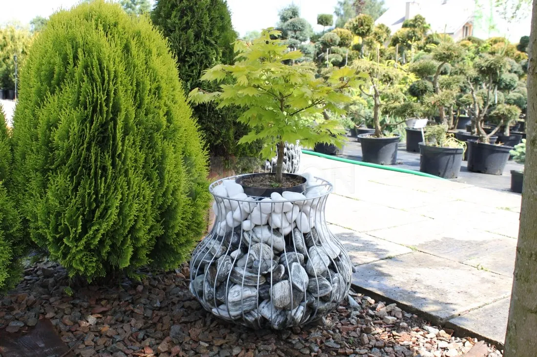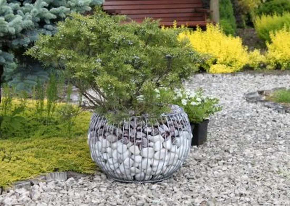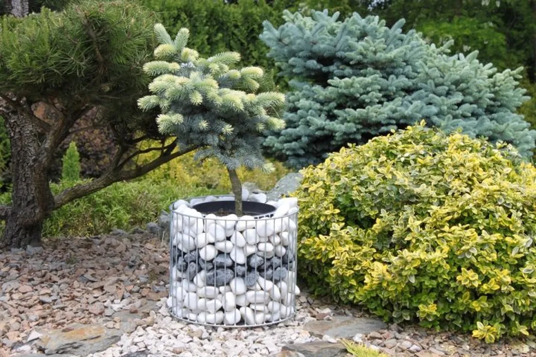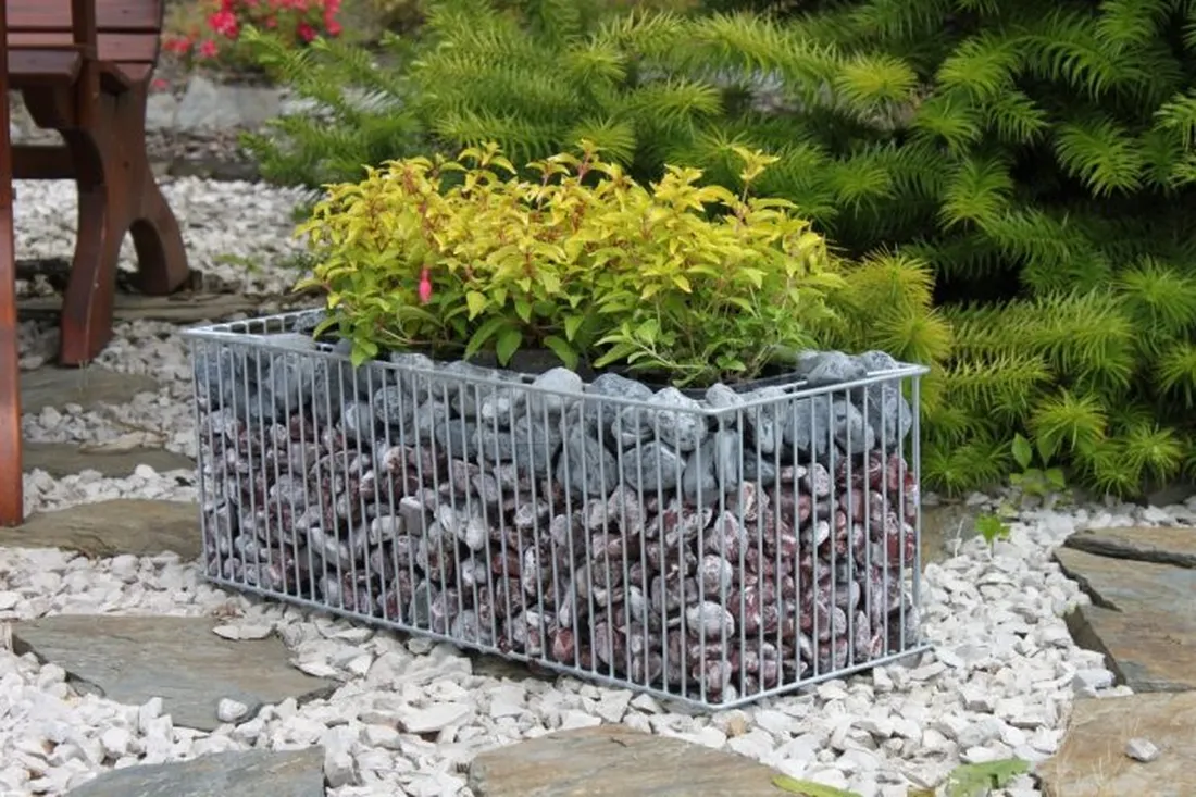 Gabiónové konštrukcie sa využívajú nielen na oporné steny a oplotenie, ale aj na okrasné prvky v záhradnej architektúre – kvetináče, lavičky, obkladové steny či dekoračné panely.