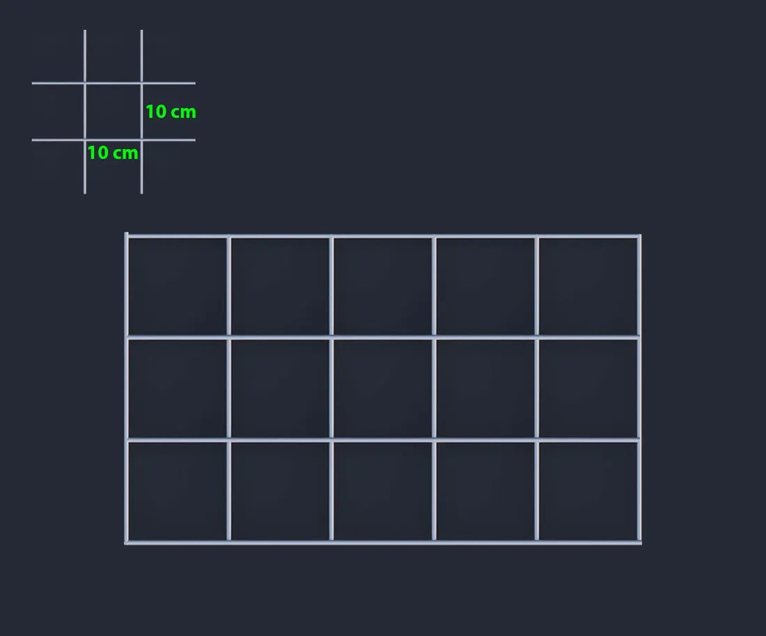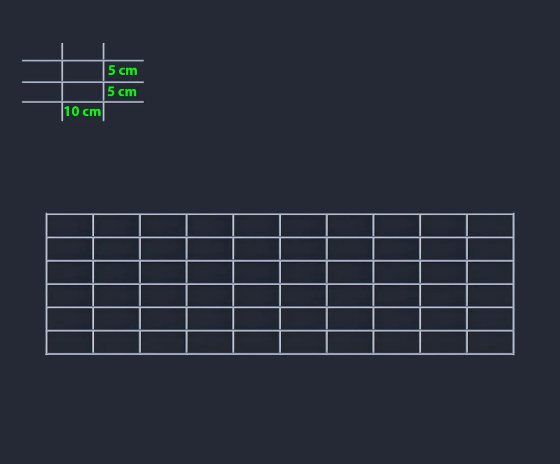 Dielce zvárame z horizontálnych U-profilov, ktoré zvarmi spájame s vertikálnymi oceľovými prútmi o priemere 4 mm, tieto prúty sú od seba vzdialené 5 cm. Vzdialenosť U-profilov je 20 cm, čím sa vytvorí oko s rozmerom 20×5 cm.