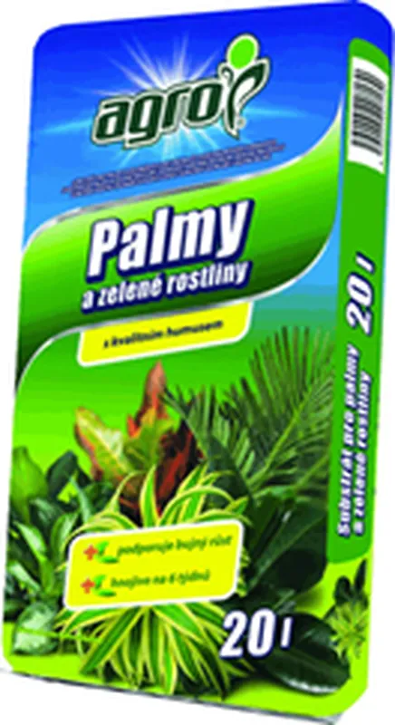 Agro substrát pre palmy a zelené rastliny svojím zložením a pridaným účinným hnojivom podporuje zdravý rast izbových rastlín, pri ktorých je rozhodujúca kvalita a farba listov. Presádzajte do neho palmy, fikusy, filodendrony, monstery, zelence, peperomie, vodenky, juky, dracény, asparagus a ďalšie listookrasné rastliny. Substrát pre palmy a zelené rastliny obsahuje vybrané druhy rašelín, kvalitný, vyzretý a jemne drvený kôrový humus, potrebné živiny a stopové prvky a hnojivo na 6 týždňov rastu.