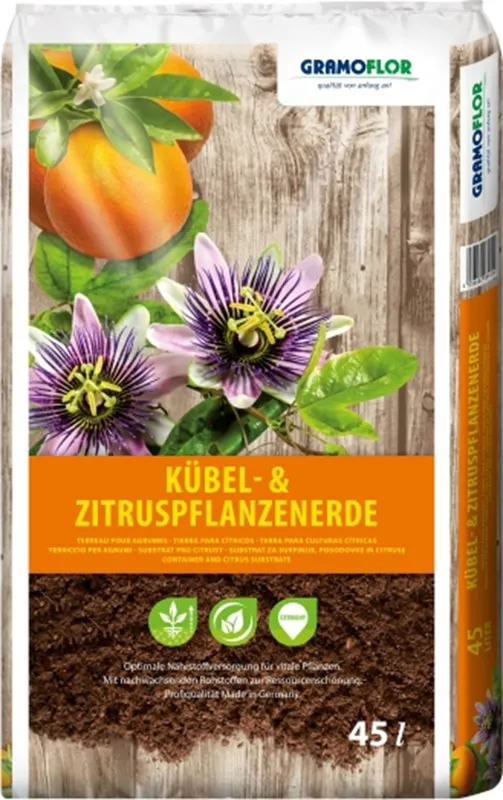 Profesionálne pripravená receptúra s ílovými minerálmi, dlhodobo pôsobiacim hnojivom a chelátovým železom pre citrusy, ibišteky, oleandre a rastliny na terasy a do zimných záhrad. Obsah živín NPK 1,2kg/m3 + 0,5kg/m3 postupne sa uvolňujúce hnojivo. Pridané aj mikroelementy. Hrubšia štruktúra, vhodný tiež do veľkých nádob.