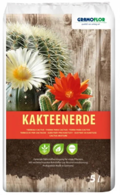 Gramoflor substrát pre kaktusy Substrát je určený pre väčšinu druhov kaktusov a sukulentných rastlín. Vysoký obsah praného riečneho piesku a vulkanického štrku zaisťuje výbornú drenáž. Prítomnosť štruktúrnej rašeliny je zárukou dobrého prevzdušnenia substrátu. Je obohatený základnými aj stopovými prvkami, zvlášť molybdénom.