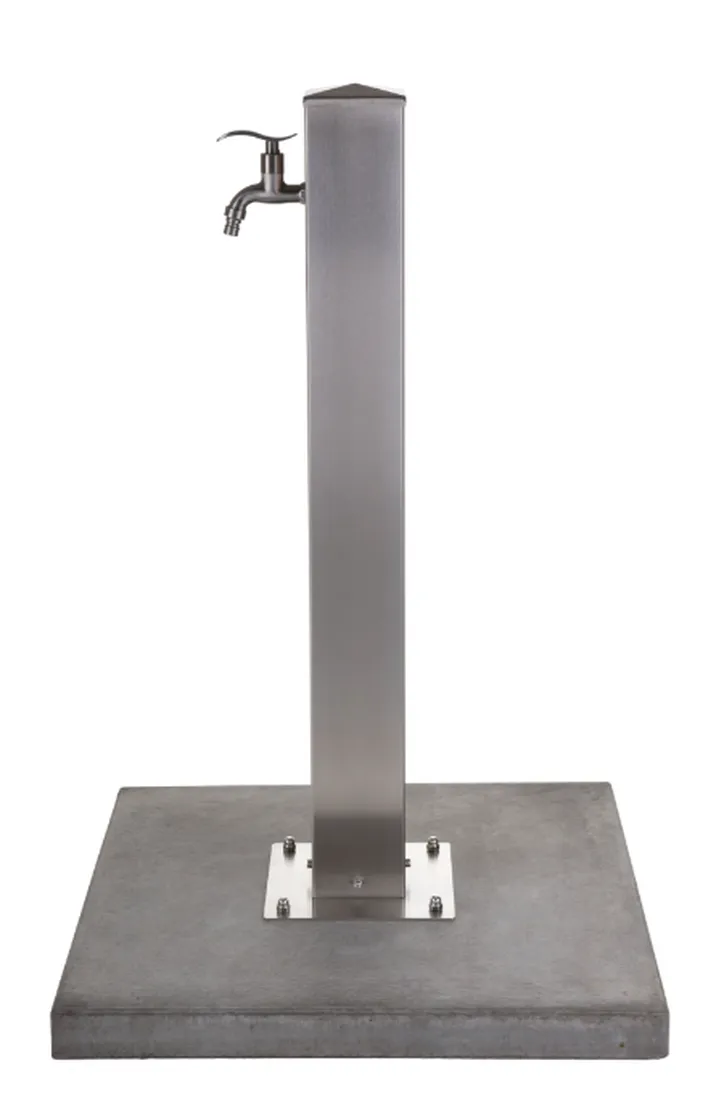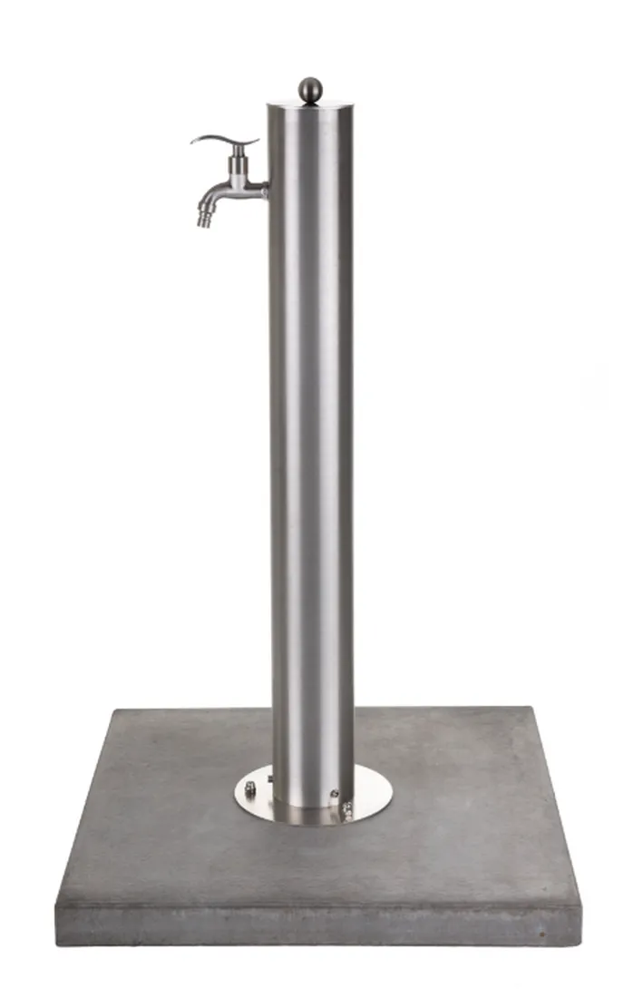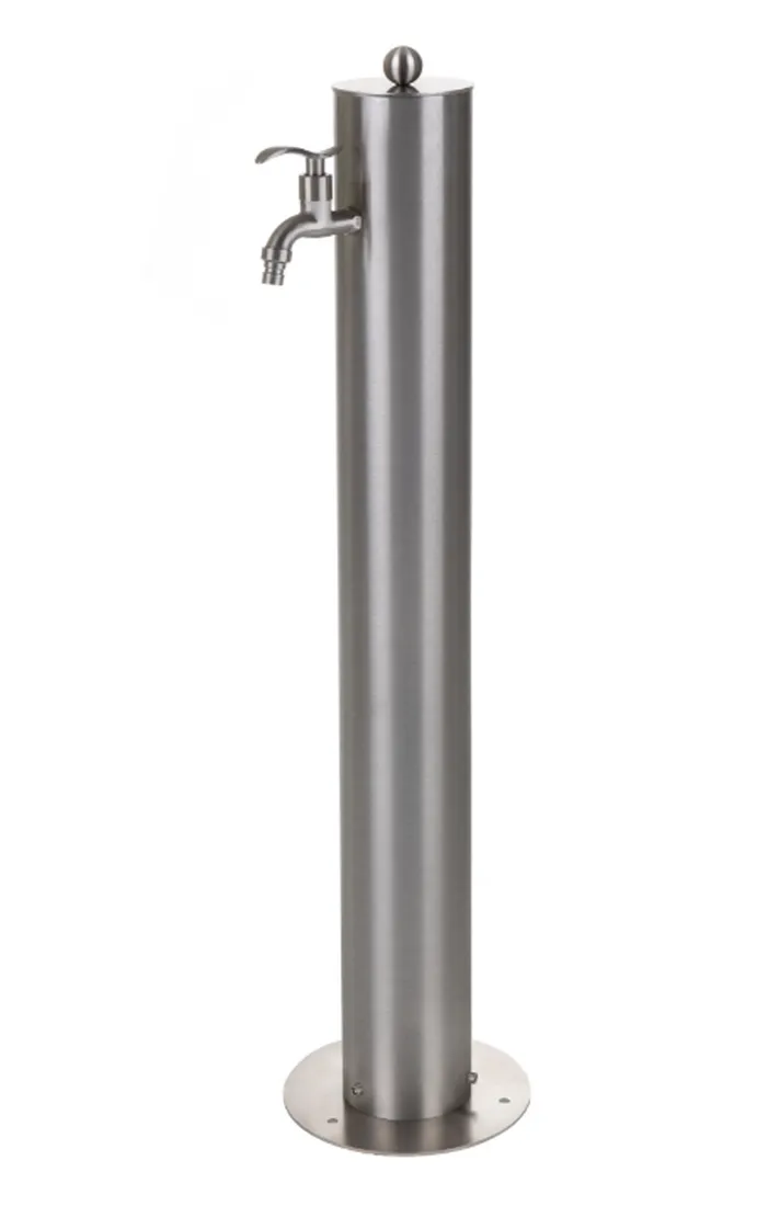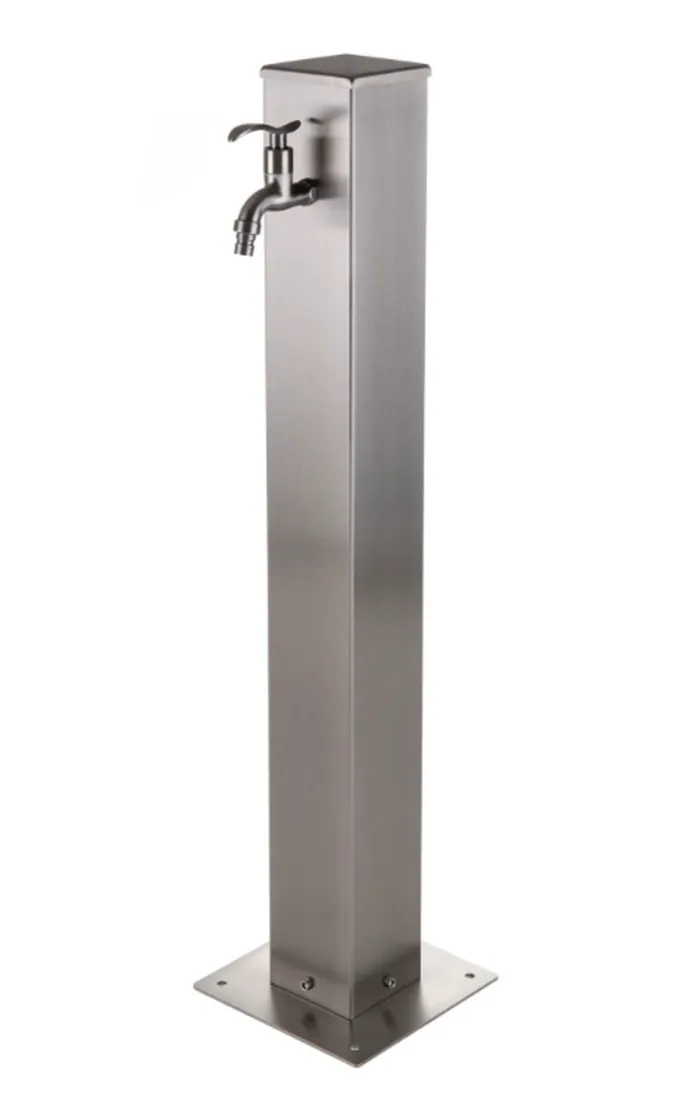Záhradný vodovod je vyrobený z brúsenej nehrdzavejúcej ocele AISI 304, vhodnej na priamy kontakt s vodou. Všetky časti vrátane spojov a skrutiek sú nerezové. Nerezový kohútik s keramickým ventilom má vstupný aj výstupný závit 1/2″. Prívod vody je riešený flexibilnou nerezovou hadicou vedenou vnútrom stĺpika, s možnosťou napojenia zo spodu alebo zozadu. Stĺpik sa kotví pomocou kotevnej platne s tromi otvormi.