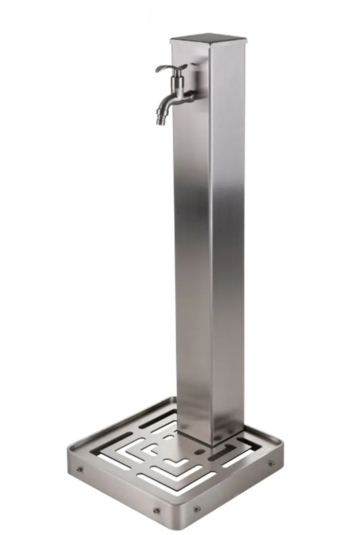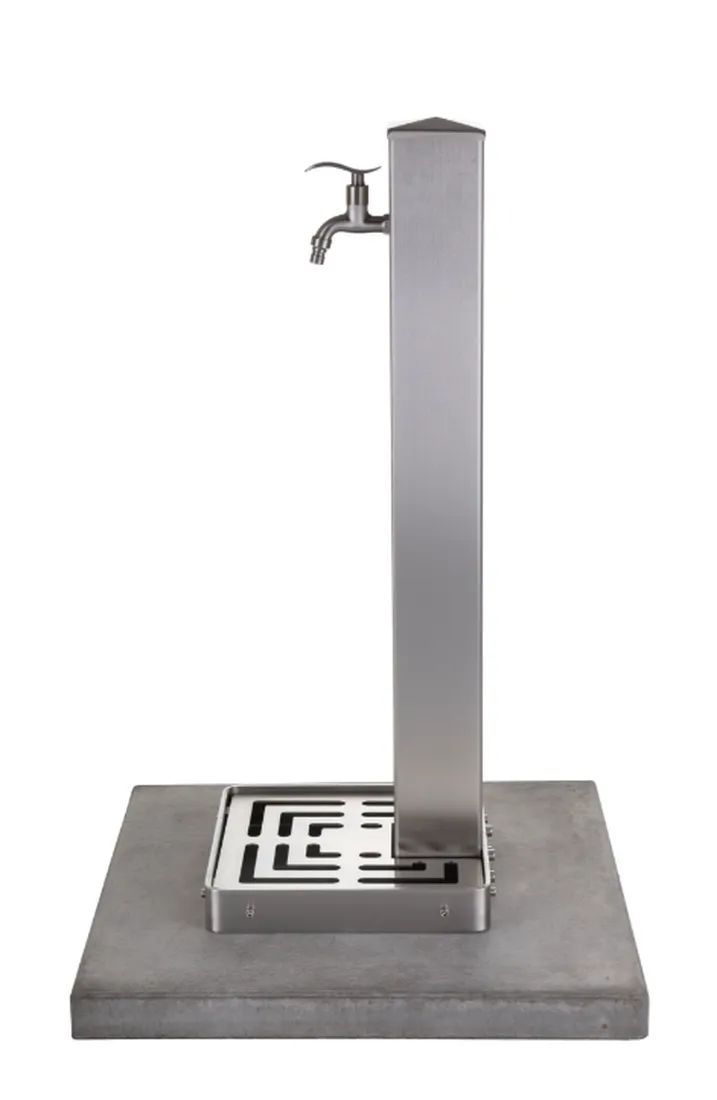 Vyrobený z nerezovej ocele AISI 304 s brúseným povrchom. Všetky diely vrátane kohútika sú nerezové, kohútik má keramický ventil a závity 1/2″. Prívod vody je riešený flexibilnou nerezovou hadicou. Variant so spodným napojením má 1/2″ vnútorný závit, variant so zadným napojením 3/4″ vonkajší závit. Stĺpik má snímateľnú striešku a upevňuje sa štyrmi otvormi Ø 8,5 mm pod vyberateľným roštom.