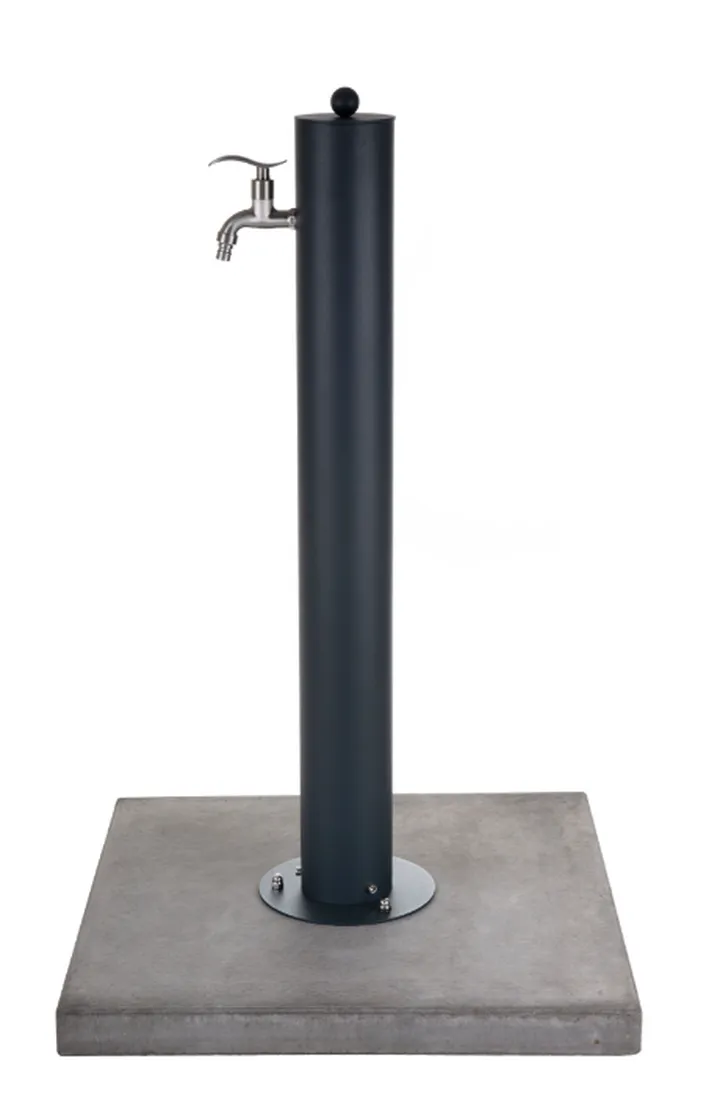 Záhradný vodovod je vyrobený z nerezovej ocele AISI 304 s práškovou povrchovou úpravou RAL 7016 (antracit). Všetky diely vrátane kohútika a spojov sú nerezové. Kohútik má keramický ventil a závity 1/2″.